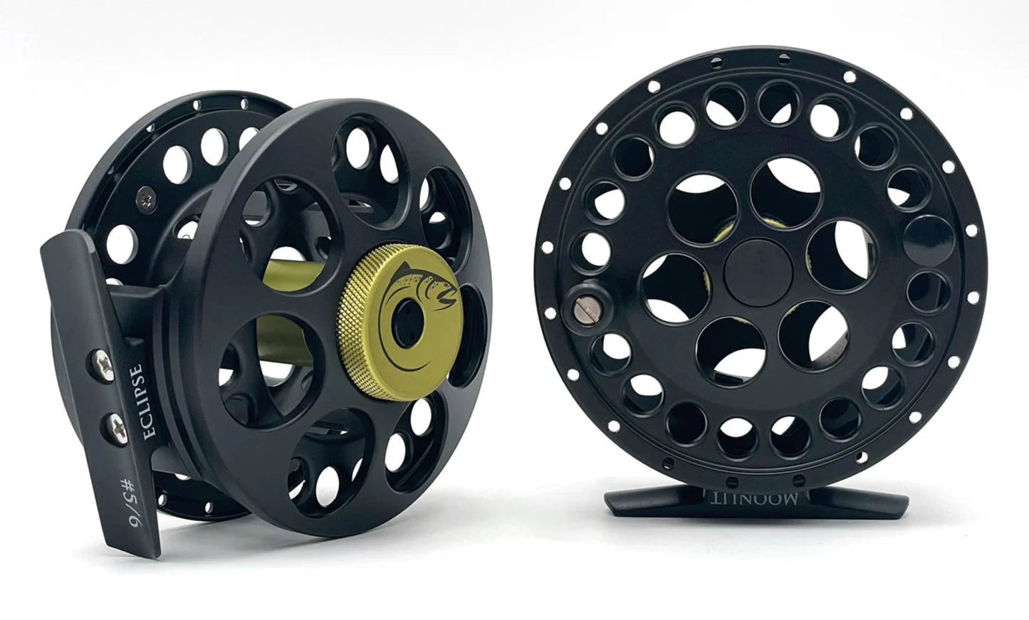 The Eclipse Reels are a machined die-cast reel with a smooth, sealed, drag system that consists of stainless steel and carbon discs. The drag one turn adjustment knob is also fully machined. These reels have more than enough room to take backing with any suitable fly line. With all this the Eclipse gives you the highest performing reel for a real value that will put your mind at ease. Pick from the two different color choices of Light Olive/Matte Black or Burnt Orange/Matte Black.