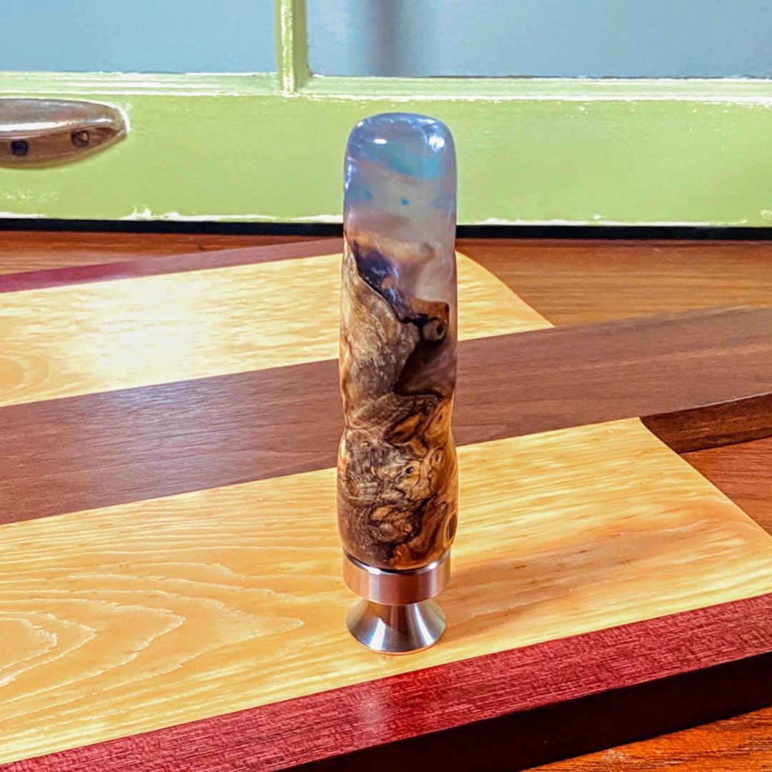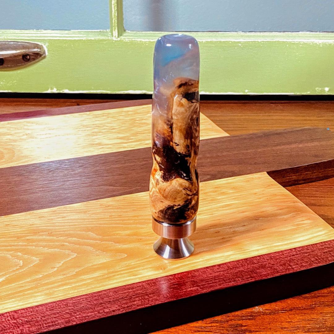 Our Stand-Up Bottle Openers are Handcrafted with wood and high quality, slow cure epoxy. The wood is stabilized and mostly burl wood or live edge.
