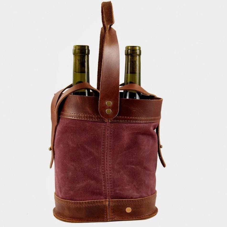 Handcrafted with a strong, comfortable carrying handle along with straps to secure each bottle in place. The combination of top-grain leather and waxed canvas makes for an appealing and durable tote that will look great in hand.