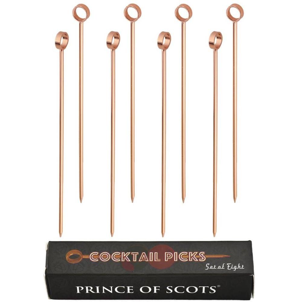 With its long, slim design measuring 4 1/3 inches, the copper Professional XL Cocktail Picks add an exquisite and refined touch to your craft cocktail presentation. Their perfect length perfectly complements any cocktail glass.
